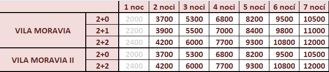 K ceně pokoje je nutné připočítat ubytovací poplatek 50Kč/dospělá osoba/1noc. Děti do 18r poplatek neplatí.
